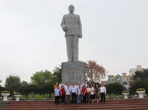 Đoàn chụp ảnh lưu niệm tại khu vực Tượng đài Tổng Bí thư Nguyễn Văn Linh