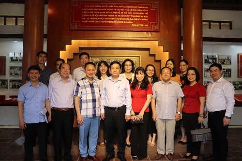 Đoàn nghe giới thiệu về thân thế, sự nghiệp của đồng chí Nguyễn Văn Linh