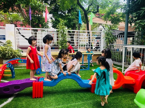 Sân trường rộng đảm bảo đủ chỗ cho trẻ được tham gia các hoạt động ngoại khóa, hoạt động học tập
