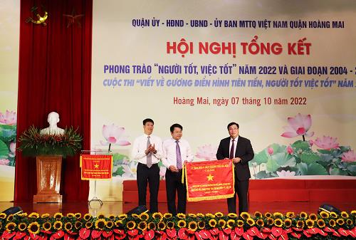 Bí thư Quận ủy Hoàng Mai Nguyễn Quang Hiếu trao tặng Cờ thi đua của thành phố Hà Nội trong thực hiện phong trào thi đua “Người tốt, việc tốt” giai đoạn (1992 - 2022) cho nhân dân và cán bộ phường Yên Sở