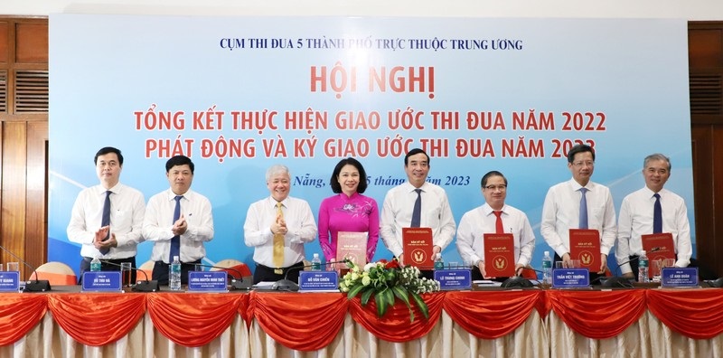 BTĐKT - Sáng 25/3, tại Đà Nẵng, Cụm thi đua 5 thành phố trực thuộc Trung ương (Hà Nội, Hải Phòng, TP. Hồ Chí Minh, Cần Thơ và Đà Nẵng) tổ chức Hội nghị tổng kết thực hiện giao ước thi đua năm 2022, phát động và ký kết giao ước thi đua năm 2023.