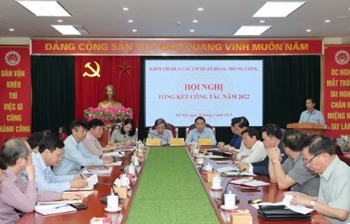 BTĐKT - Ngày 28/4, tại Hà Nội đã diễn ra Hội nghị tổng kết công tác thi đua, khen thưởng năm 2022 Khối thi đua các cơ quan Đảng Trung ương (bao gồm 14 cơ quan, đơn vị: Văn phòng Trung ương Đảng, Cơ quan Ủy ban Kiểm tra Trung ương; Ban Tổ chức Trung ương, Ban Tuyên giáo Trung ương, Ban Dân vận Trung ương, Ban Nội chính Trung ương, Ban Kinh tế Trung ương, Ban Đối ngoại Trung ương; Đảng ủy Khối các cơ quan Trung ương; Đảng ủy Khối Doanh nghiệp Trung ương; Học viện Chính trị Quốc gia Hồ Chí Minh; Báo Nhân Dân; Nhà Xuất bản Chính trị quốc gia Sự thật; Tạp chí Cộng sản).