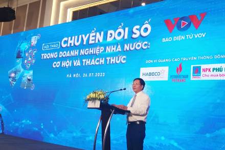 BTĐKT - Sáng 26/7, tại Hà Nội, Báo điện tử VOV, Đài Tiếng nói Việt Nam tổ chức Hội thảo "Chuyển đổi số trong doanh nghiệp nhà nước: Cơ hội và thách thức", với mong muốn nhìn lại công việc chuyển đổi số và chỉ ra những thách thức trong tương lai, nhấn mạnh vai trò, tầm quan trọng và yêu cầu cấp bách của chuyển đổi số trong sự phát triển của doanh nghiệp nhà nước nói riêng và phát triển kinh tế - xã hội nói chung.