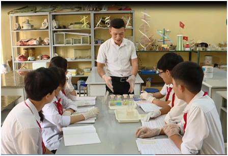 Thầy giáo Đào Thanh Tuấn hướng dẫn học sinh làm thí nghiệm