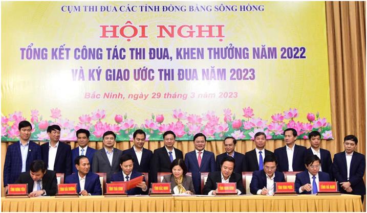 Các đơn vị trong Cụm thi đuacác tỉnhđồng bằng sông Hồng ký kết giao ước thi đua năm 2023