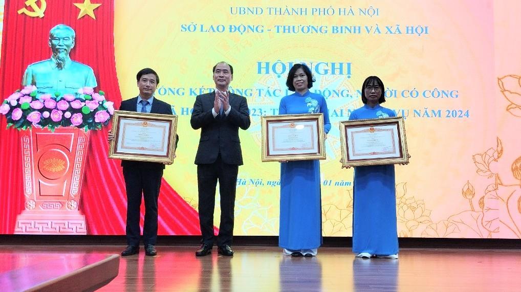 Ghi nhận những nỗ lực đó, tại hội nghị, 6 tập thể, cá nhân vinh dự được tặng Bằng khen của Thủ tướng Chính phủ; 19 tập thể và cá nhân được tặng Bằng khen của Bộ trưởng Bộ Lao động - TB&XH; 33 tập thể được tặng Bằng khen của UBND TP Hà Nội.