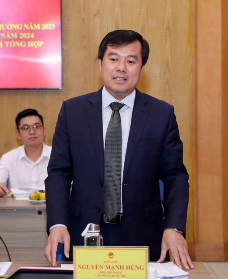 Đồng chí Nguyễn Mạnh Hùng, Phó Chủ nhiệm Văn phòng Quốc hội tham luận tại hội nghị (Ảnh:MPI)
