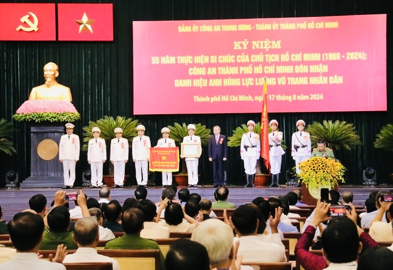 BTĐKT - Sáng 17/8, Đảng ủy Công an Trung ương và Thành ủy TP Hồ Chí Minh tổ chức Lễ kỷ niệm 55 năm thực hiện Di chúc của Chủ tịch Hồ Chí Minh (1969 - 2024); Công an TP Hồ Chí Minh đón nhận danh hiệu Anh hùng Lực lượng vũ trang nhân dân.