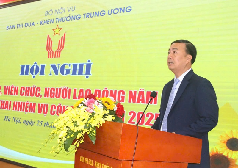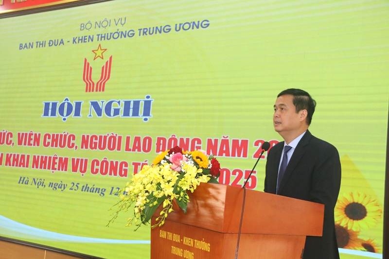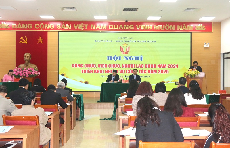 Phát biểu tại hội nghị, đồng chí Phạm Huy Giang, Trưởng ban Ban Thi đua - Khen thưởng Trung ương ghi nhận và biểu dương tập thể Ban đã hoàn thành toàn diện các nhiệm vụ công tác năm 2024. Đồng chí đề nghị công chức, viên chức, người làm việc của Ban tập trung thực hiện tốt một số nhiệm vụ trọng tâm năm 2025: Thực hiện tốt nhiệm vụ thường trực Hội đồng Thi đua - Khen thưởng Trung ương, tham mưu đẩy mạnh các phong trào thi đua chào mừng Đại hội Đảng các cấp tiến tới Đại hội lần thứ XIV của Đảng và tổ chức thành công Đại hội Thi đua yêu nước toàn quốc lần thứ XI (năm 2025); tham mưu triển khai Chỉ thị mới của Bộ Chính trị về tăng cường sự lãnh đạo của Đảng đối với công tác thi đua, khen thưởng; nghiên cứu sửa đổi, bổ sung Nghị định 98 và các thông tư hướng dẫn kèm theo; tham mưu phát động các phong trào thi đua yêu nước ngay từ đầu năm; thẩm định hồ sơ, trình khen thưởng kịp thời; củng cố, kiện toàn tổ chức; nâng cao chất lượng công tác đào tạo, bồi dưỡng cán bộ…