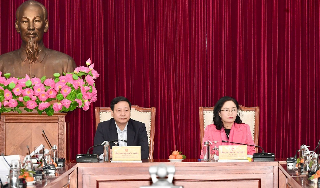 Tiếp và làm việc với Đoàn, có: Thứ trưởng Bộ VHTTDL Trịnh Thị Thủy, lãnh đạo Vụ Tổ chức cán bộ và lãnh đạo các đơn vị được thanh tra trực tiếp.