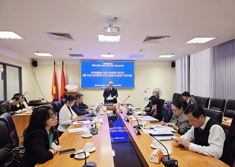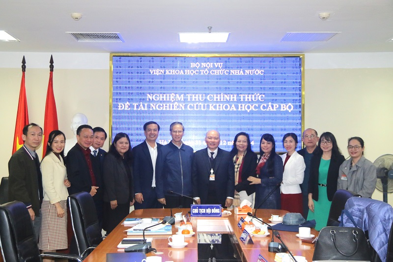 Dự buổi nghiệm thu, có TS. Vũ Đăng Minh, Chánh Văn phòng Bộ Nội vụ, Chủ tịch Hội đồng; TS. Nguyễn Hiền Hạnh, Phó Viện trưởng Viện Khoa học Tổ chức nhà nước, Phó Chủ tịch Hội đồng; các thành viên Hội đồng nghiệm thu chính thức đề tài.