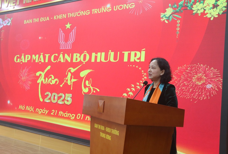 Phát biểu tại buổi gặp mặt, đồng chí Trần Thị Hà, nguyên Thứ trưởng Bộ Nội vụ, nguyên Trưởng ban Ban Thi đua - Khen thưởng Trung ương chúc mừng, chia vui với những kết quả, thành tích tập thể Ban đã đạt được trong năm qua. Các phong trào thi đua được Ban tham mưu phát động đã dần đi vào thực chất hơn, mang lại lợi ích thiết thực cho người dân, được cả hệ thống chính trị hưởng ứng, tham gia rất tích cực. Đồng chí mong muốn Ban Thi đua - Khen thưởng Trung ương tiếp tục phát huy kết quả, thành tích đã đạt được, có nhiều kết quả, thành tích cao hơn, tham mưu nhiều phong trào thi đua thiết thực, thực chất hơn nữa.