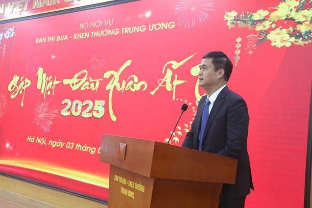 Nhấn mạnh năm mới đặt ra cho cả hệ thống chính trị nói chung và Ban Thi đua – Khen thưởng Trung ương những nhiệm vụ hết sức nặng nề, Thứ trưởng Bộ Nội vụ Vũ Chiến Thắng chúc Ban Thi đua - Khen thưởng Trung ương và các đồng chí trong hệ thống làm công tác thi đua, khen thưởng toàn quốc lời chúc mừng năm mới tốt đẹp nhất, chúc Ban tiếp tục đoàn kết, nỗ lực để hoàn thành xuất sắc các nhiệm vụ được giao.