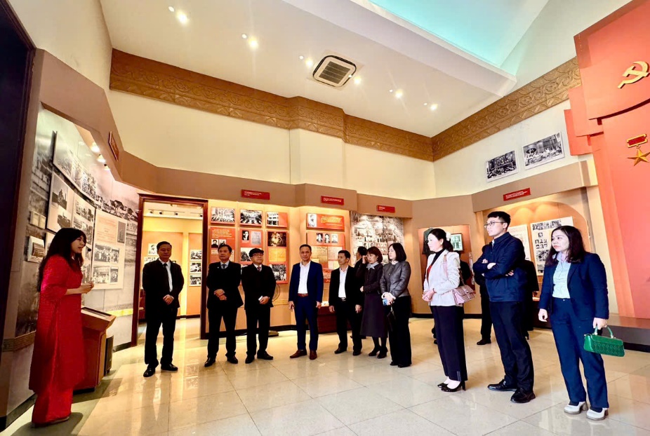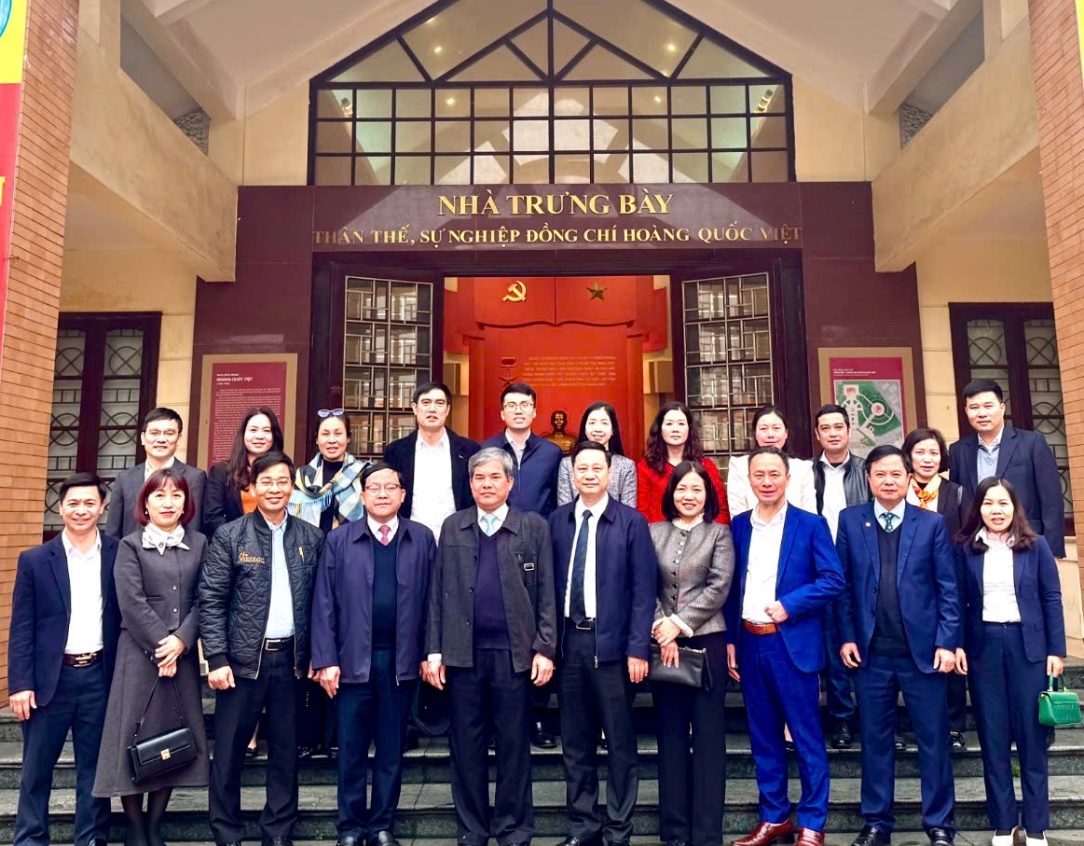 Đoàn chụp ảnh lưu niệm tại nhà trưng bày thân thế, sự nghiệp đồng chí Hoàng Quốc Việt