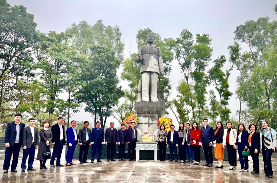 Đoàn chụp ảnh lưu niệm tại tượng đài đồng chí Hoàng Quốc Việt
