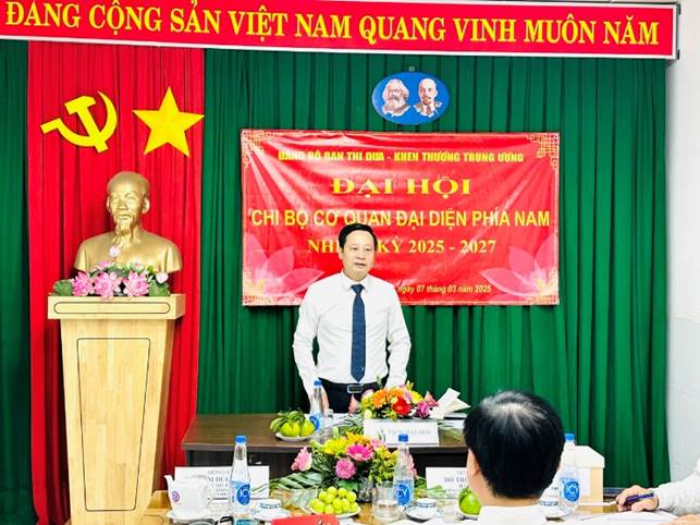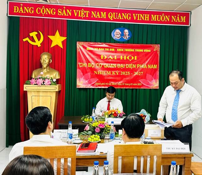 Báo cáo tại Đại hội, đồng chí Nguyễn Đức Nhuận, Bí thư Chi bộ nhiệm kỳ 2022 - 2025, cho biết: Chi bộ đã thực hiện nghiêm túc các nguyên tắc tổ chức của Đảng, nhất là nguyên tắc “Tập trung dân chủ”, tập trung lãnh đạo, chỉ đạo, triển khai thực hiện có hiệu quả các chỉ tiêu, nhiệm vụ của Nghị quyết Đại hội Chi bộ đề ra trong nhiệm kỳ qua. Công tác phối hợp trong thực hiện lãnh đạo của Chi bộ chặt chẽ, sâu sát hơn, có nhiều đổi mới theo hướng thiết thực, hiệu quả. Chi bộ Cơ quan đại diện phía Nam luôn chủ động, bám sát chỉ đạo của Đảng ủy Ban và kế hoạch công tác hằng năm của Ban, để kịp thời lãnh đạo, chỉ đạo triển khai thực hiện thắng lợi nhiệm vụ chính trị.