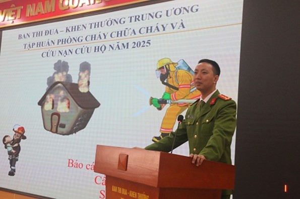 Báo cáo viên của lớp tập huấn có: Đại úy Bùi Văn Vũ, giảng viên Trường Đại học Phòng cháy, chữa cháy.