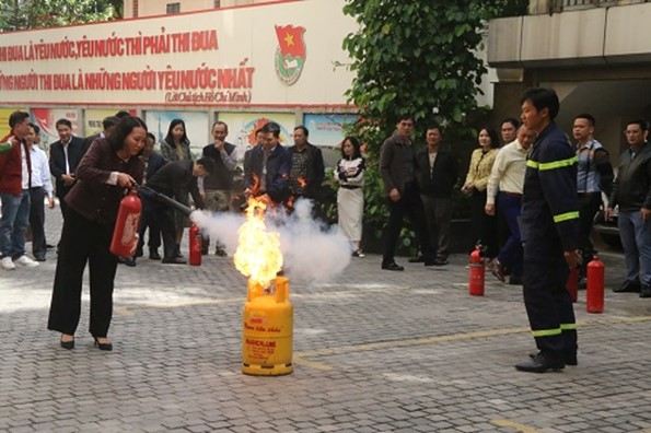 Diễn tập sử dụng phương tiện dập tắt sự cố cháy nổ
