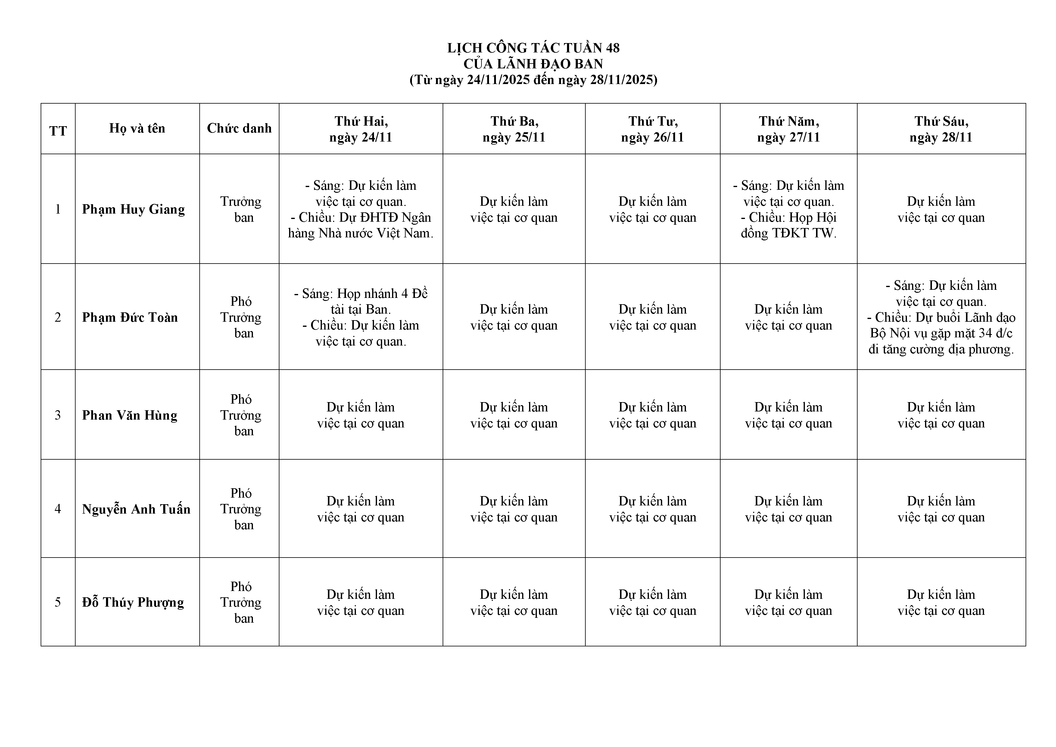 LỊCH CÔNG TÁC từ ngày 24.11.2025 đến ngày 28.11.2025