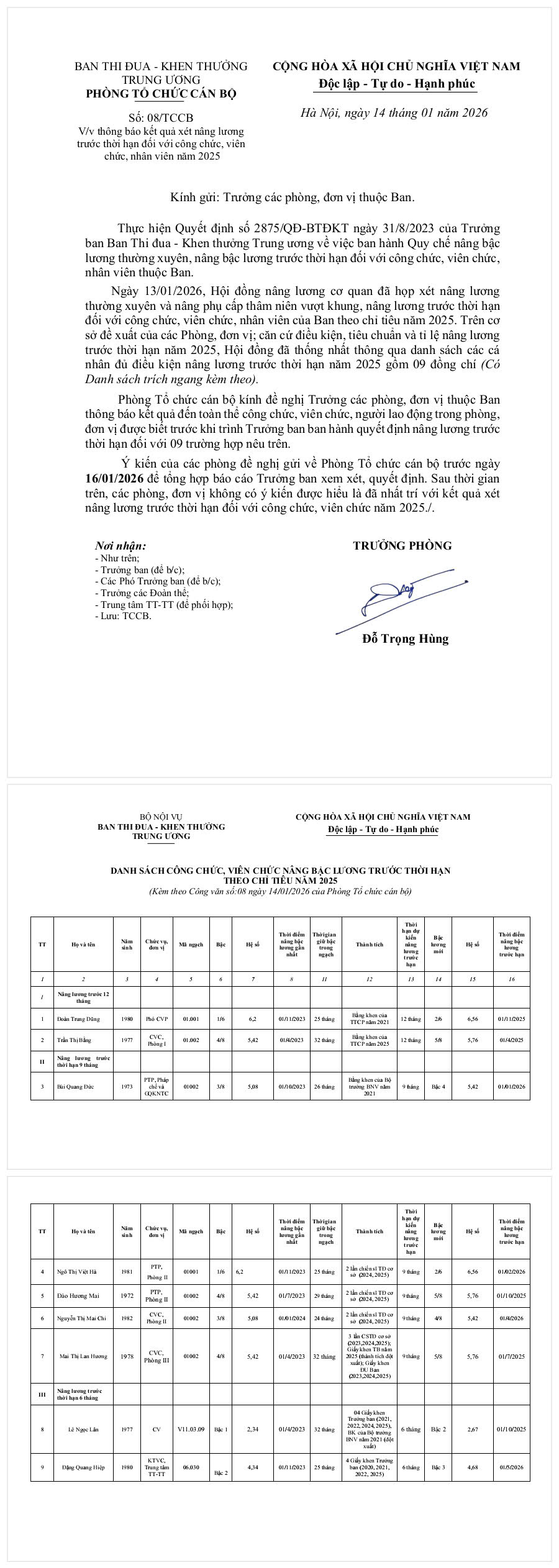 Thông báo kết quả xét nâng lương trước thời hạn đối với công chức, viên chức, nhân viên năm 2025