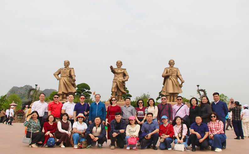Đoàn chụp ảnh tại Quảng trường Chiến thắng nơi đặt tượng của 3 vị anh hùng dân tộc: Ngô Quyền, Lê Đại Hành và Trần Hưng Đạo