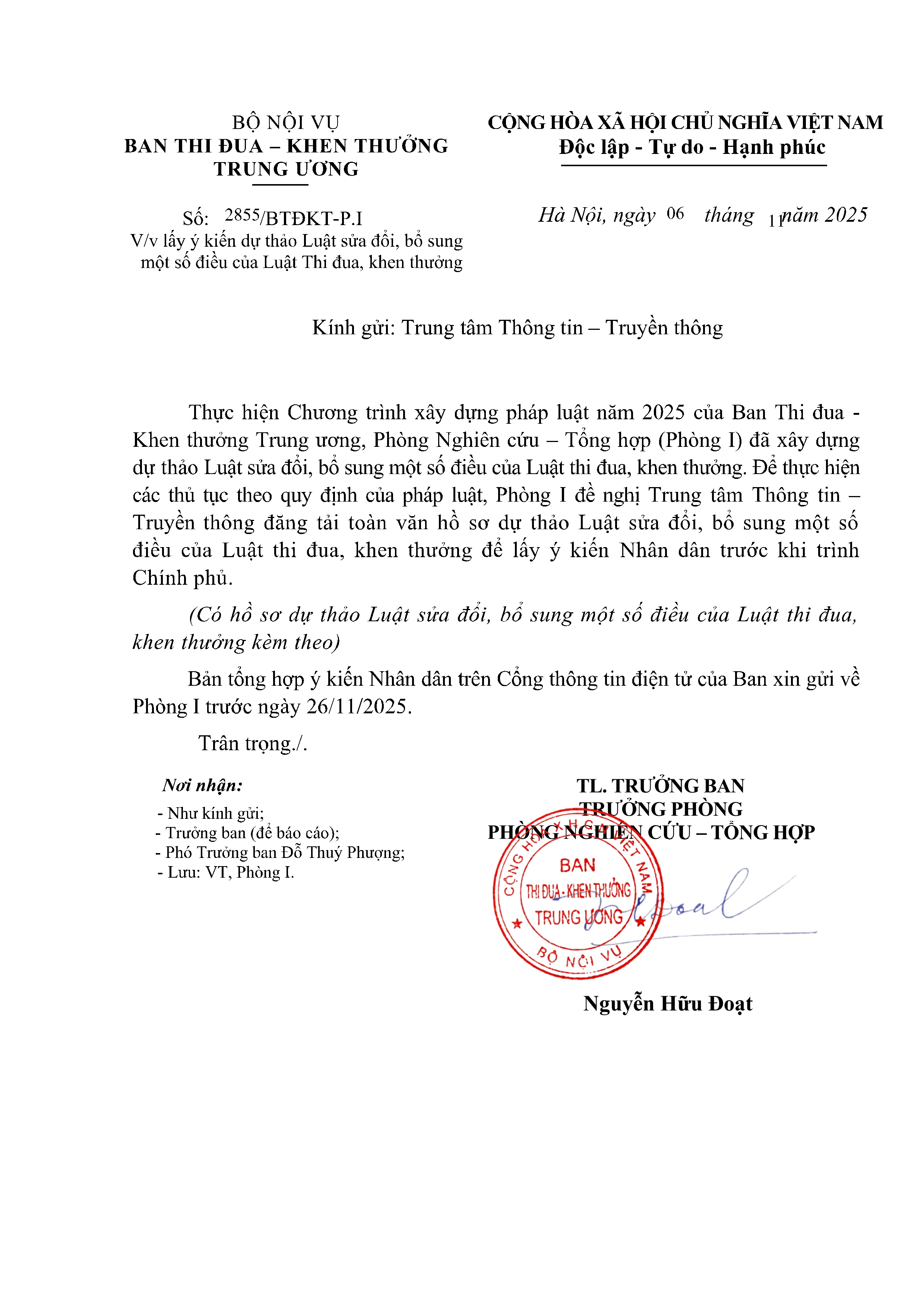 2. Dự thảo Luật sửa đổi. bổ sung một số điều của Luật Thi đua, khen thưởng